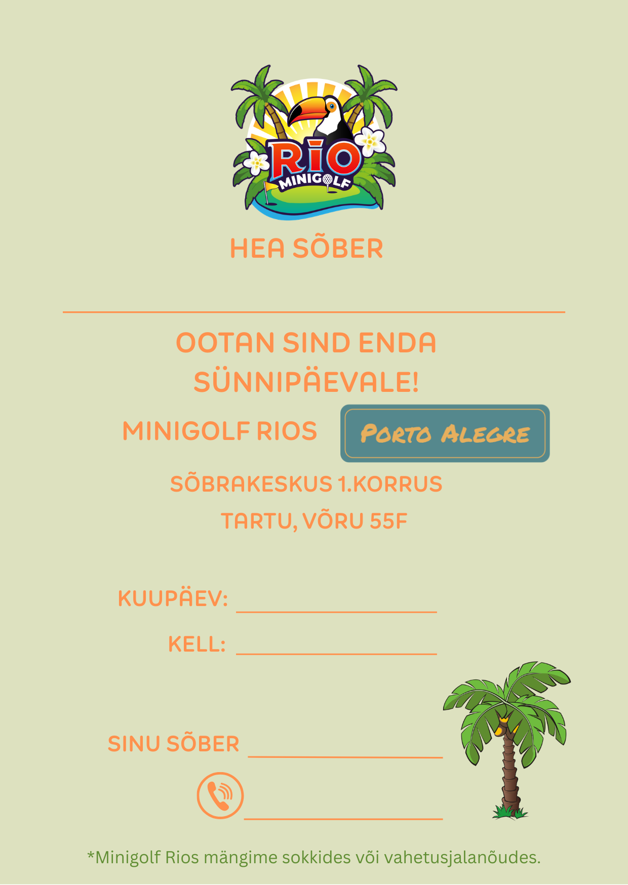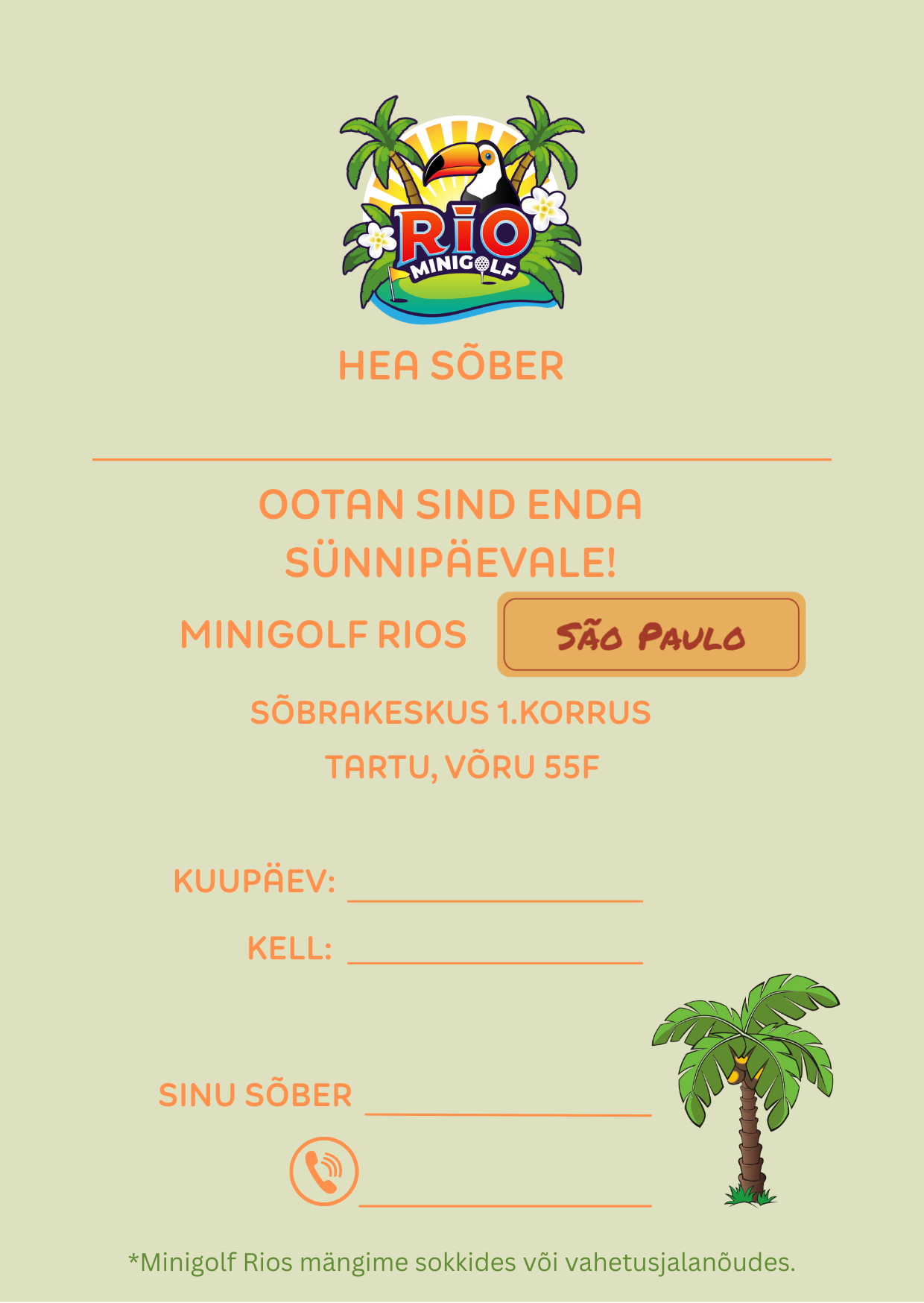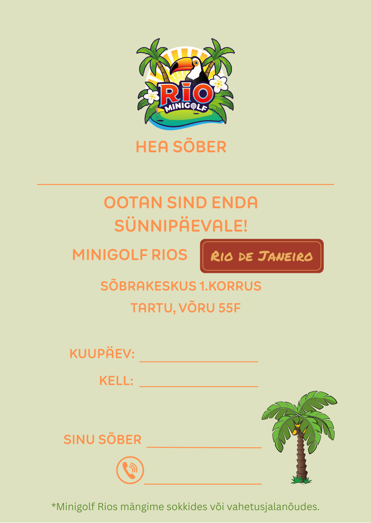 - Minigolf Rio ei osuta lapsehoiu teenust.